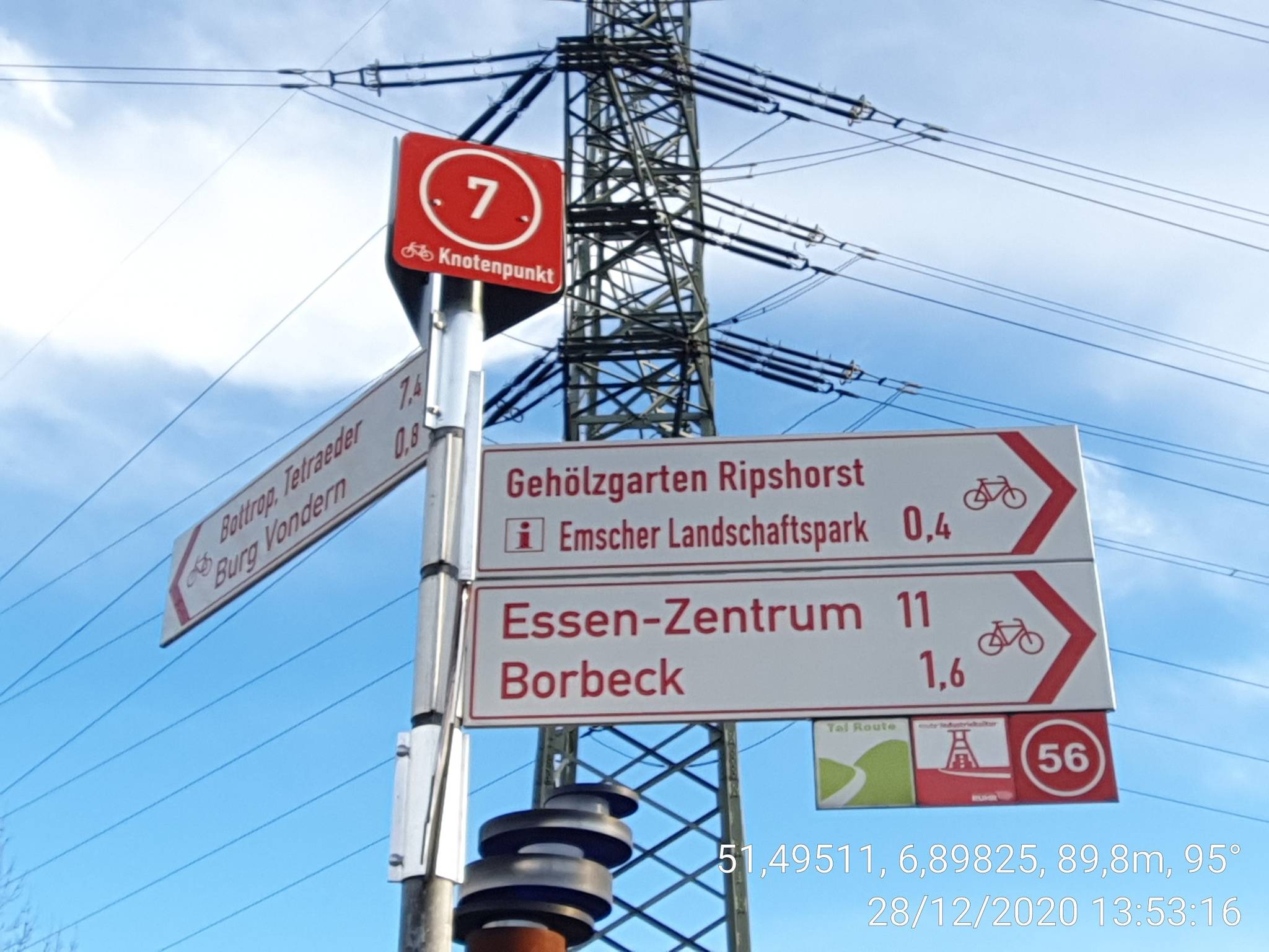Essener Str. zum Knoten 6 (2km) Knoten 6-7 (Bottrop, 4km) Tal Route N-S (8km) bis zum Knoten 56 ab dort Wasser Route N-S: aktuelle Umleitung (11km) |
